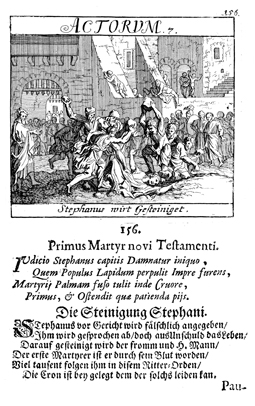 Description: Stephen is stoned to death for preaching Christ resurrected, thereby becoming the first Christian martyr.