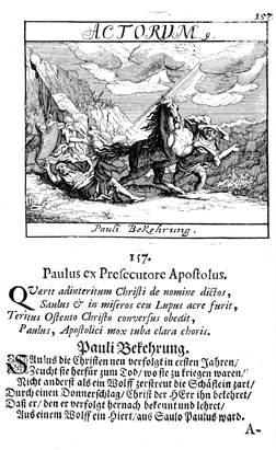 Description: Saul falls from his horse as the risen Christ asks why Saul is persecuting him.