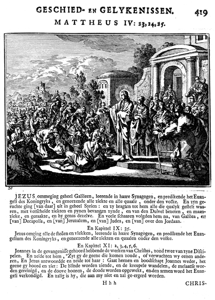 Description: Jesus heals the sick. The Dutch artist and poet Johannes Luyken (1649-1712) drew and etched this emblem and wrote the accompanying poem.