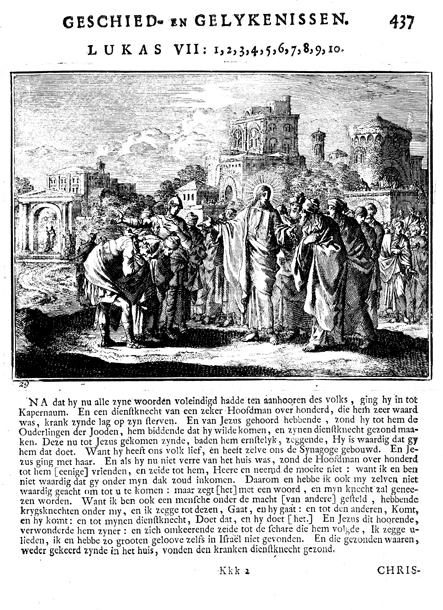 Description: The elders sent by the Centurion plead with Jesus to heal the sick servant. The Dutch artist and poet Johannes Luyken (1649-1712) drew and etched this emblem and wrote the accompanying poem.