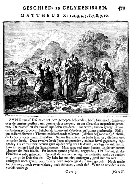 Description: Jesus sends the twelve disciples out. The Dutch artist and poet Johannes Luyken (1649-1712) drew and etched this emblem and wrote the accompanying poem.