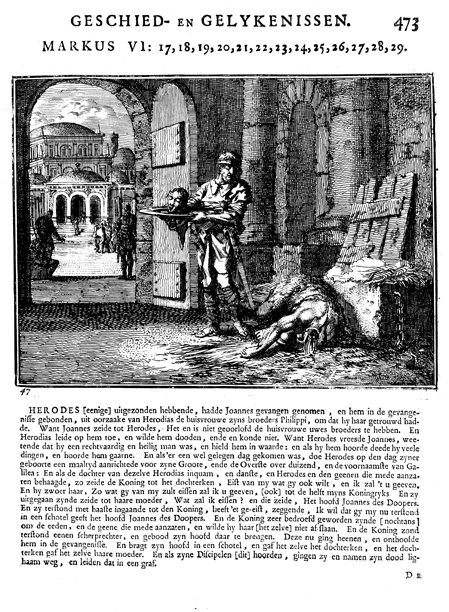 Description: John the Baptist beheaded in prison. The Dutch artist and poet Johannes Luyken (1649-1712) drew and etched this emblem and wrote the accompanying poem.