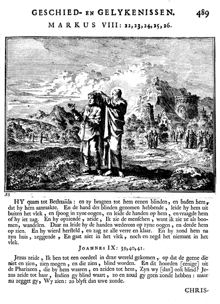Description: Jesus heals a blind man and places his hands on the man’s head. The Dutch artist and poet Johannes Luyken (1649-1712) drew and etched this emblem and wrote the accompanying poem.