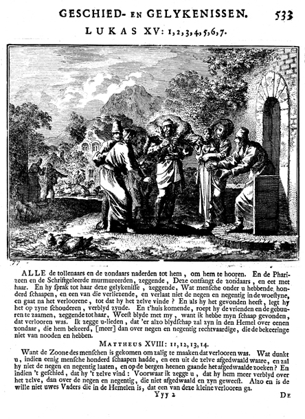 Description: The parable of the lost and found-again sheep. The Dutch artist and poet Johannes Luyken (1649-1712) drew and etched this emblem and wrote the accompanying poem.
