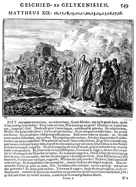 Description: The rich young man abandons Jesus. The Dutch artist and poet Johannes Luyken (1649-1712) drew and etched this emblem and wrote the accompanying poem.