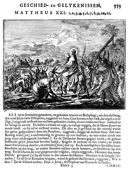 Description: Entrance of Jesus into Jerusalem. The Dutch artist and poet Johannes Luyken (1649-1712) drew and etched this emblem and wrote the accompanying poem.