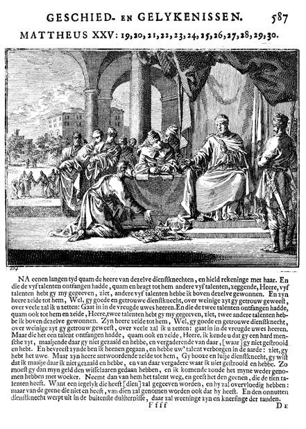 Description: The parable of the lazy servant who returned to his master one unused talent. The Dutch artist and poet Johannes Luyken (1649-1712) drew and etched this emblem and wrote the accompanying poem.