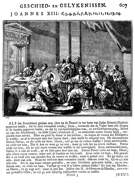 Description: Jesus washes Peter's feet. The Dutch artist and poet Johannes Luyken (1649-1712) drew and etched this emblem and wrote the accompanying poem.