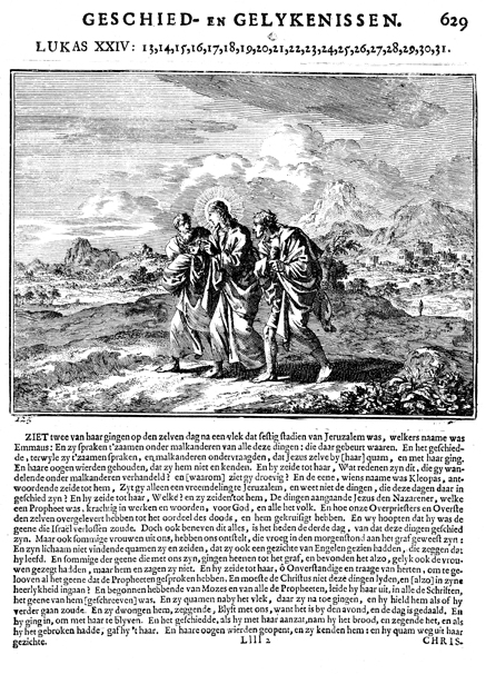 Description: Jesus appears before the travelers to Emmaus. The Dutch artist and poet Johannes Luyken (1649-1712) drew and etched this emblem and wrote the accompanying poem.