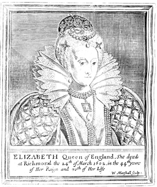 Description: Portrait of Queen Elizabeth I of England (r. 1558-1603). Elizabeth was a popular queen, ushering the country from royal instability to a steadfast reign of over four decades, and from severe Catholic repression to moderate Protestantism. The name of the engraver, William Marshall (d. 1649), appears at the bottom right.