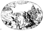 Description: In the apocryphal Book of Tobit, the angel Raphael comes to the blind Tobias and his wife Anna and in order to accompany his son Tobias on a journey.