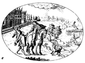 Description: The wife of St. James Intercisus (d. 421) rides on horseback as her husband is cut to pieces in the background for refusing to apostatize.
