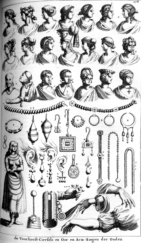 Description: Various type of jewelry, seen as they were worn (top) and individually.