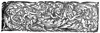 Description: This headpiece features a group of putti with bows and arrows surrounded by vines.