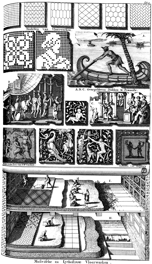 Description: Depictions of various kinds of tiles used in the ancient world.