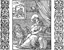 Description: Mark writes his gospel as his attribute, the lion, is nearby.