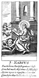 Description: Saint Mark the Evangelist writing the gospel with his attribute, the lion.