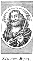 Description: A portrait of the apostle James the Greater with his attributes, a scallop shell and a pilgrim’s staff.