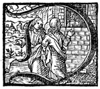 Description: This initial letter D depicts John the Baptist sending messengers to Jesus from prison.