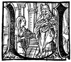 Description: This initial letter U depicts Jesus’ presentation in the temple before Simeon and Anna.