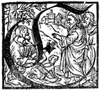 Description: This initial letter E depicts Jesus giving sight to a blind man.