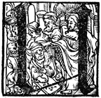Description: This initial letter U depicts Jesus driving the moneychangers from the temple.