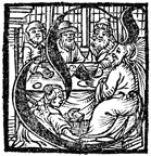 Description: This initial letter E depicts a sinful woman anointing Jesus’ feet.
