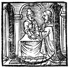 Description: This initial letter U depicts Jesus calling Matthew to be a disciple.