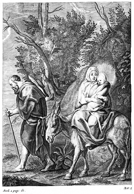 Description: Having been warned in a dream of Herod’s plans to slaughter the male infants of Bethlehem, Mary and Joseph take the baby Jesus to Egypt.