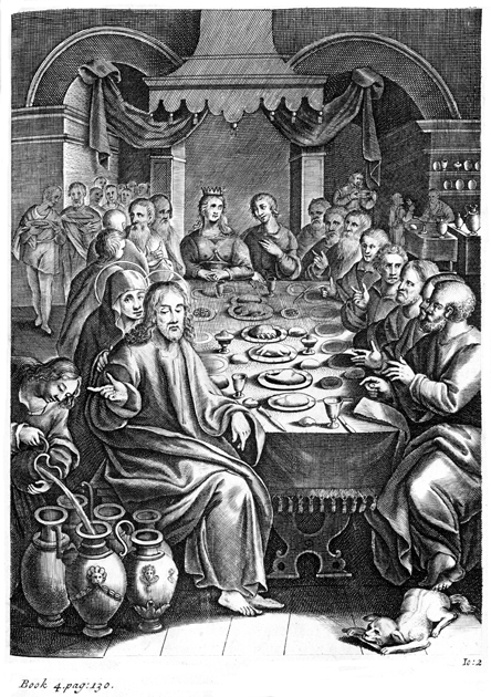 Description: At the request of Mary, Jesus performs his first miracle, changing water into wine at a wedding feast in Cana.