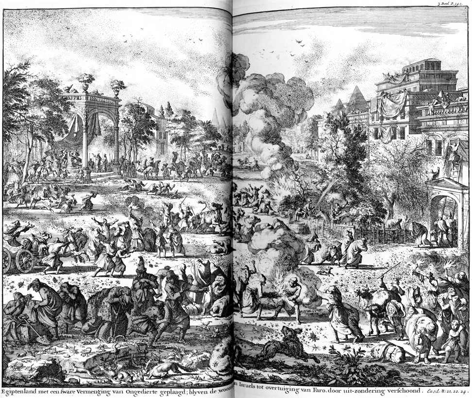 Description: God punishes Egypt with the fourth plague, an infestation of flies.
