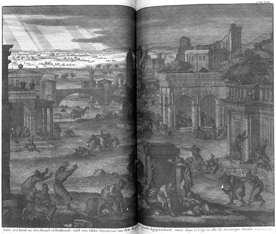 Description: God punishes Egypt with the ninth plague, darkness.