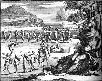 Description: This illustration depicts a child sacrifice for the god Moloch, a god worshipped by the Canaanites.
