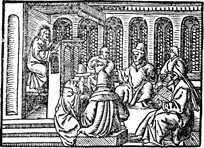 Description: Mary and Joseph find the twelve-year-old Jesus in the temple, sitting among the teachers, listening and asking questions.