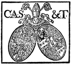 Description: A coat of arms featuring the image of a pope between two shields.