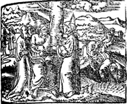 Description: Jesus speaks about judging others as a person with a plank in his eye corrects another with a speck in his eye and two blind people fall in a hole attempting to lead each other.