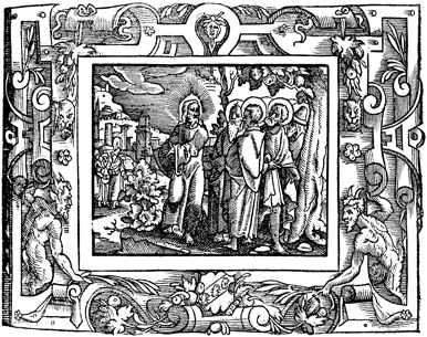 Description: Jesus indicates Jerusalem behind him and draws away from the disciples, explaining that he will soon leave them.