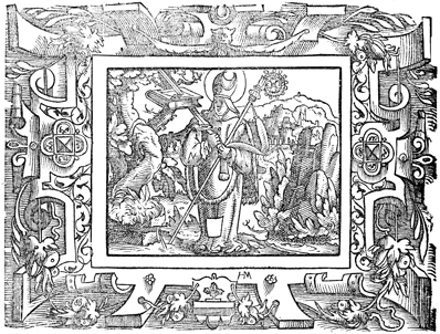 Description: St. Boniface, patron saint of Germany and the first archbishop of Mainz, appears here, since the sermon illustrated (preached on Matthew 5) was preached on his feast day. The sword and book are two of his attributes.