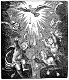 Description: The Holy Spirit descends in the form of a dove and as tongues of fire while angels celebrate.