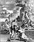 Description: Rebekah serves water to Abraham's chief servant and camels, showing that she is God's chosen wife for Isaac.