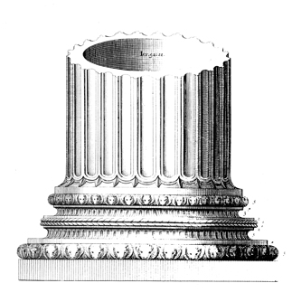 Description: One of the temple columns, decorated with bronze bulls, as described in Jeremiah 52.