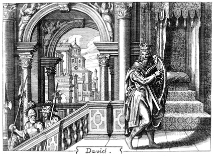 Description: King David, holding a harp, is depicted as the Psalmist.