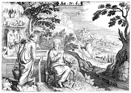 Description: Jesus speaks with the Samaritan woman at the well in Sychar.