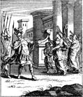 Description: Jephthah is greeted by his daughter as he returns victorious from battle.