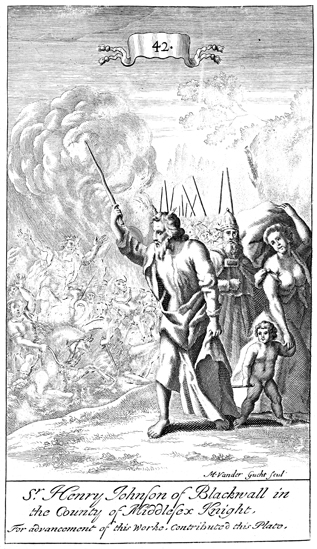 Description: As Moses and Israel stand safely on the shore, Pharaoh's army is drowned in the Red (Reed) Sea. The engraver’s name, Michael van der Gucht (1660-1725), has been set at the foot of the image, and as the numeral at the head of the page indicates, this is plate #42 in a series of illustrations.