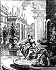 Description: As David looks down from a palace balcony, Bathsheba bathes in a pool.
