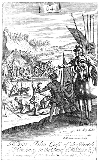 Description: Gideon selects those who lap water, as a dog, to be his army. The name of the artist, Frederick Hendrick van Hove (1628-1698), has been set at the base, and as the numeral at the head of the page indicates, this is plate #64 in a series of illustrations .