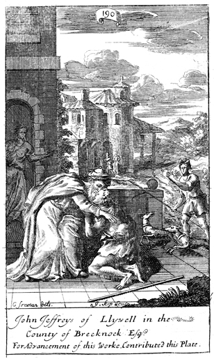 Description: The father embraces his son upon his return home. The names of the artist, G. Freman, and the engraver, Johannes Kip (1653-1722), have been set at the base, and as the numeral at the head of the page indicates, this is plate #190 in a series of illustrations.