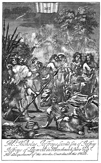 Description: Judas identifies Jesus to his captors with a kiss; Peter strikes Malchus with his sword. The name of the engraver’s name, Michael van der Gucht (1660-1725), has been set at the foot, and as the numeral at the head of the page indicates, this is plate #203 in a series of illustrations.