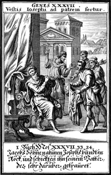 Description: After dipping Joseph's garment into goat's blood, Joseph's brothers deceive their father, Jacob, into thinking that an animal has devoured Joseph.